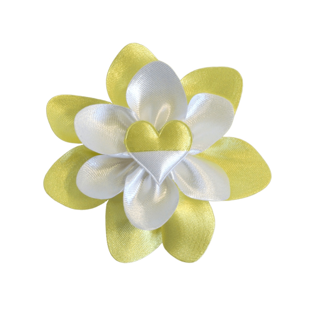 Satynowa rozeta w kolorach papieskich biało-żółtym.